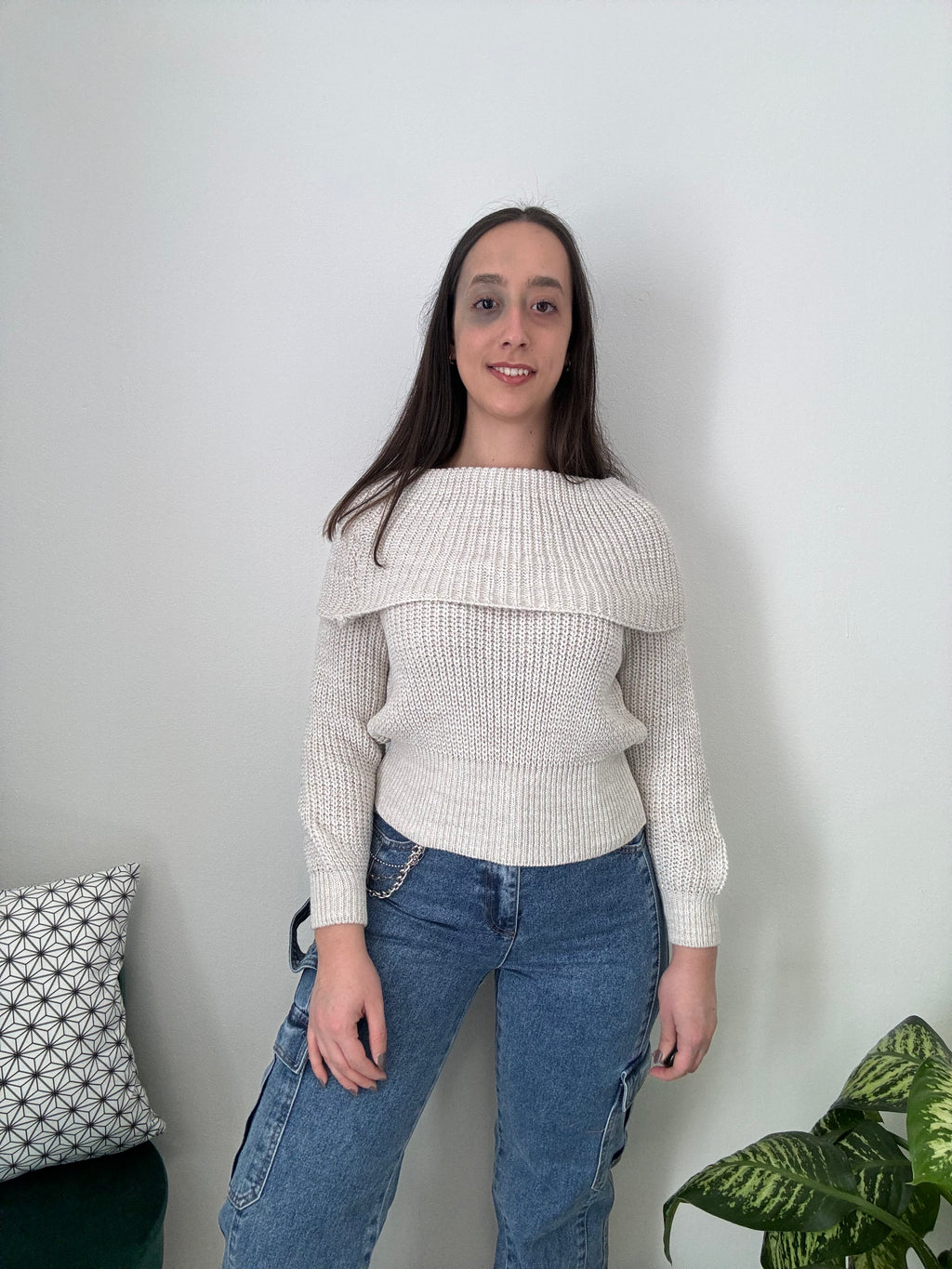 Maglione con collo a barca glitter, taglia unica veste dalla XS alla L