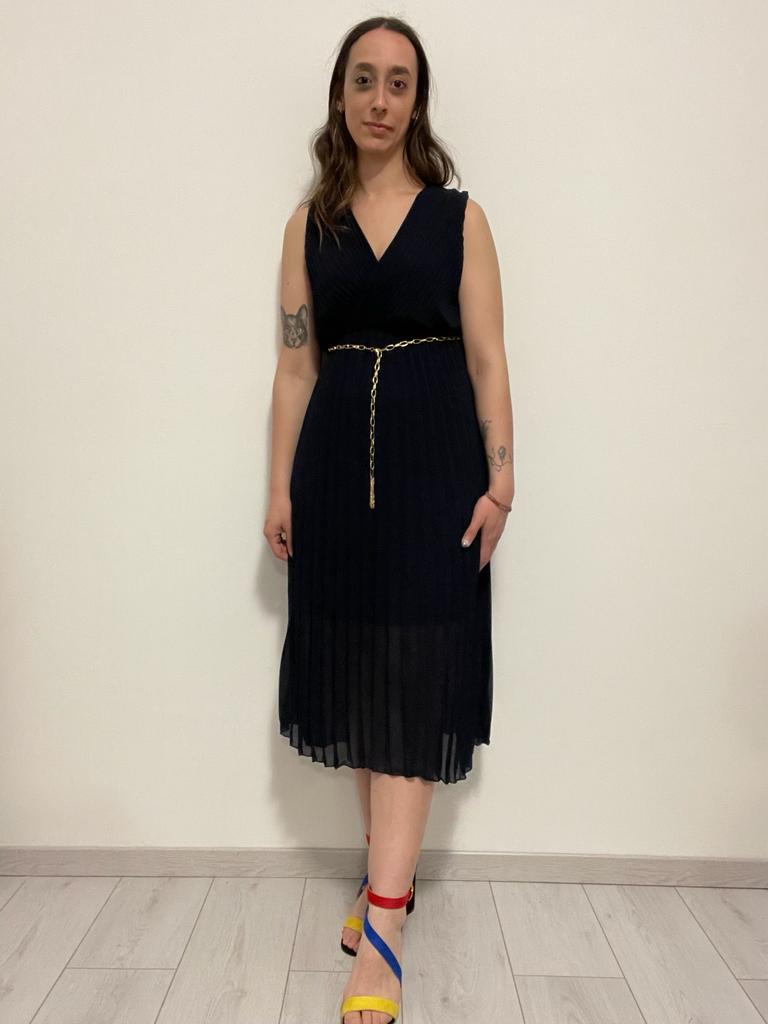 VESTITO PLISSETTATO BLU