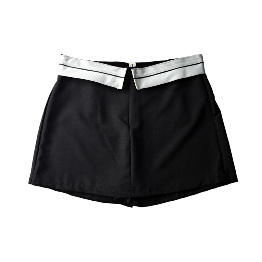 Minigonna a pantaloncino nera con risvolto bianco, in viscosa e zip sul davanti