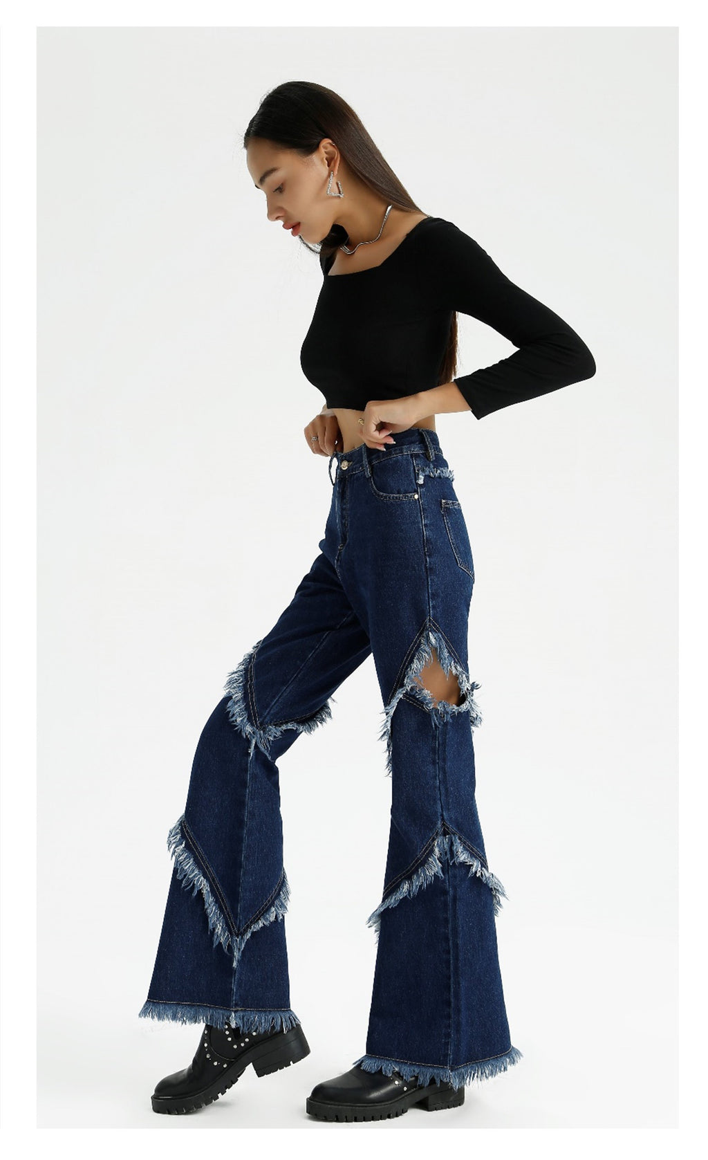 Jeans con incrocio blu con spacco laterale sulle coscie