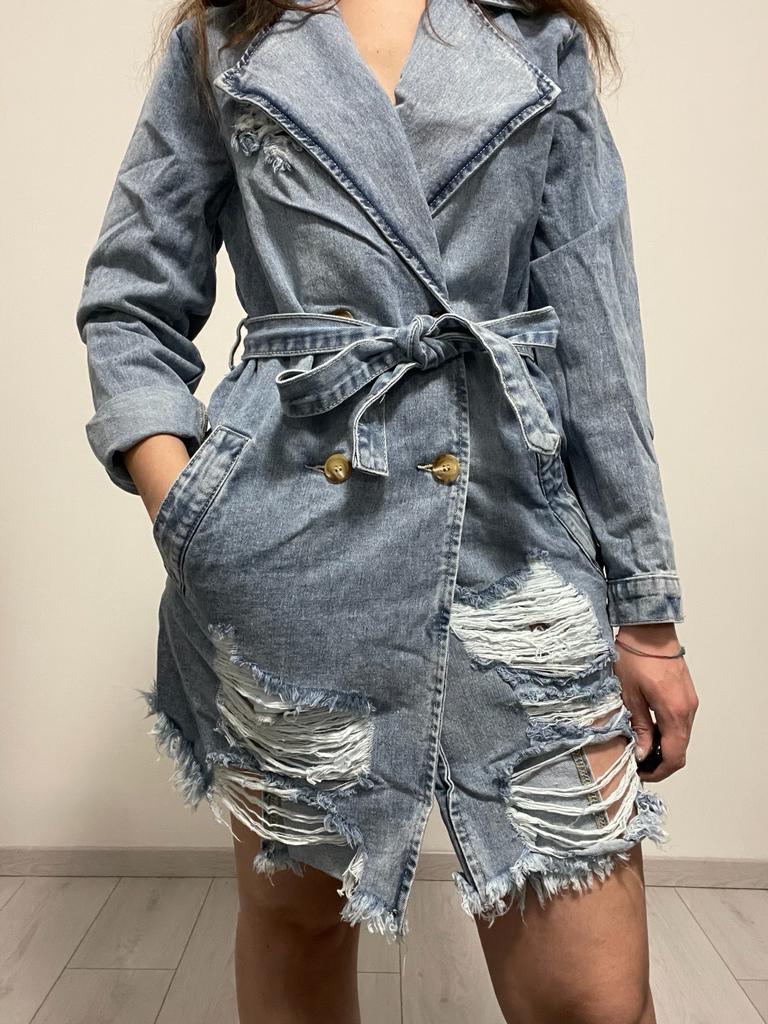 Trench in jeans con strappi